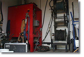 The Hydraulic cutter is used with steel cutting blades from 4 inches to 24 inches in diameter. The hydro motor in the root cutter works off water pressure from the high-pressure jetting units. Besides cutting roots it also removes with ease blockages of hard grease, compacted sand, soil or other solid obstructions in drains and sewers.